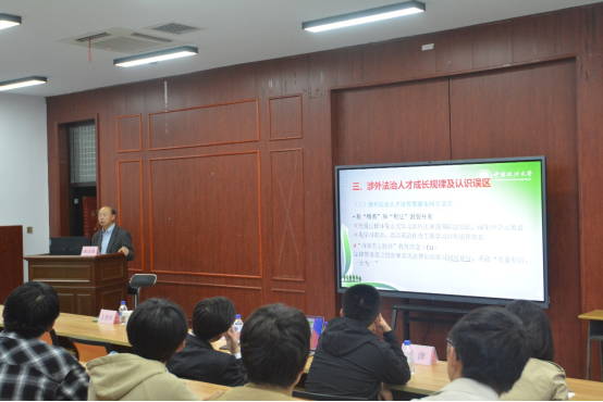 张法连教授围绕涉外法治人才的培养定位、核心素养及成长规律等几个方面开始讲授。他指出,涉外法治人才应具有国际视野、通晓国际规则,能够用法律外语处理涉外法律事务;应当以“精英明法”为培养理念;涉外法治人才的培养是一个分阶段、分层次的系统工程,要有机融合法律英语与英美法的学习,注重实践与理论的结合。