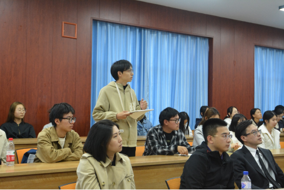 在讲座后的提问环节中,学生们踊跃发言,提出了关于法律英语学习方法、涉外法治人才就业前景等方面的问题。张法连教授对每一个问题都做出了细致解答,并以他丰富的学术背景和实践经验,为学生们提供了具体的建议。